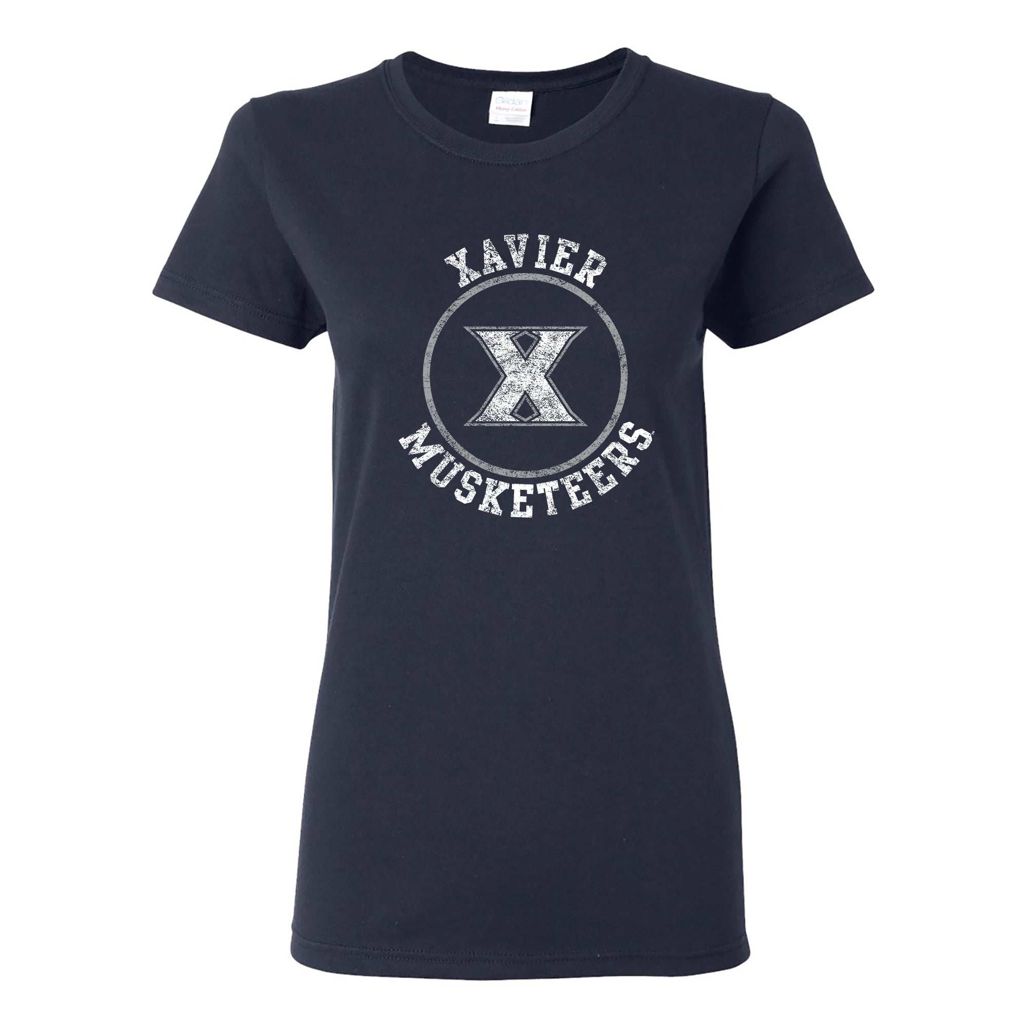 Xavier University Musketeers Distressed Circle Logo Short Sleeve Womens T Shirt - Navy