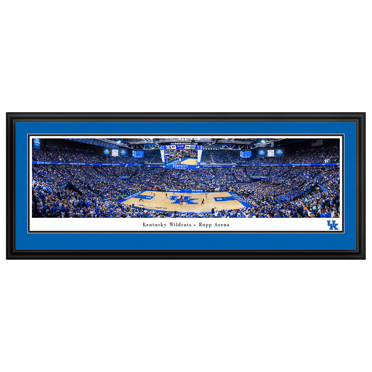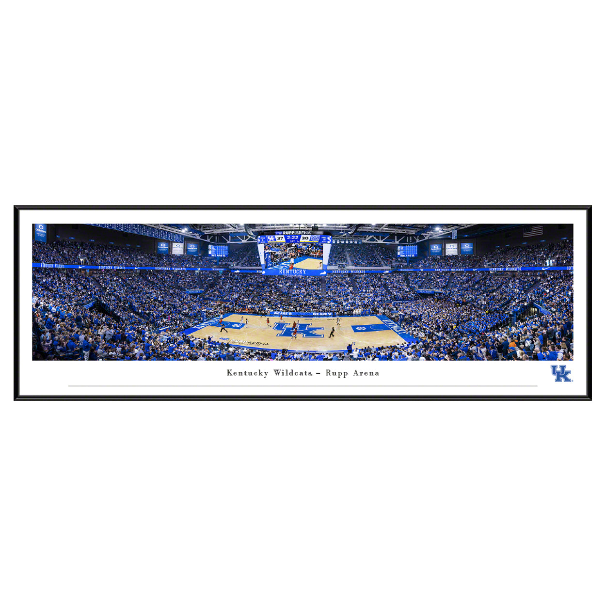 This panorama highlights the on court action of the Kentucky Wildcats at Rupp Arena. The Wildcats have played to fans since 1903, and the program has featured many notable and successful players. Kentucky holds the record for the most overall NBA Draft selections and is also the only school to win multiple NCAA and NIT championships.